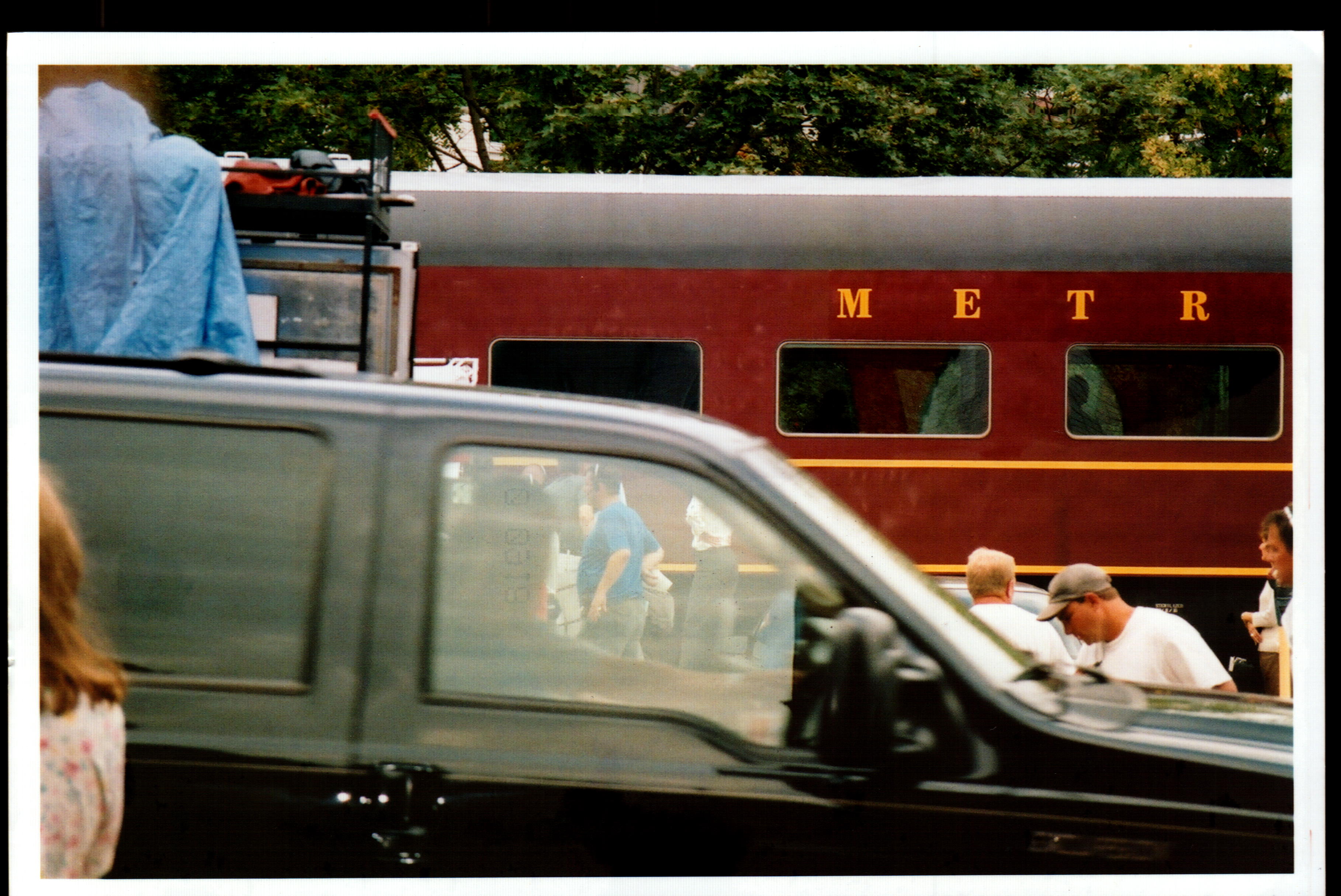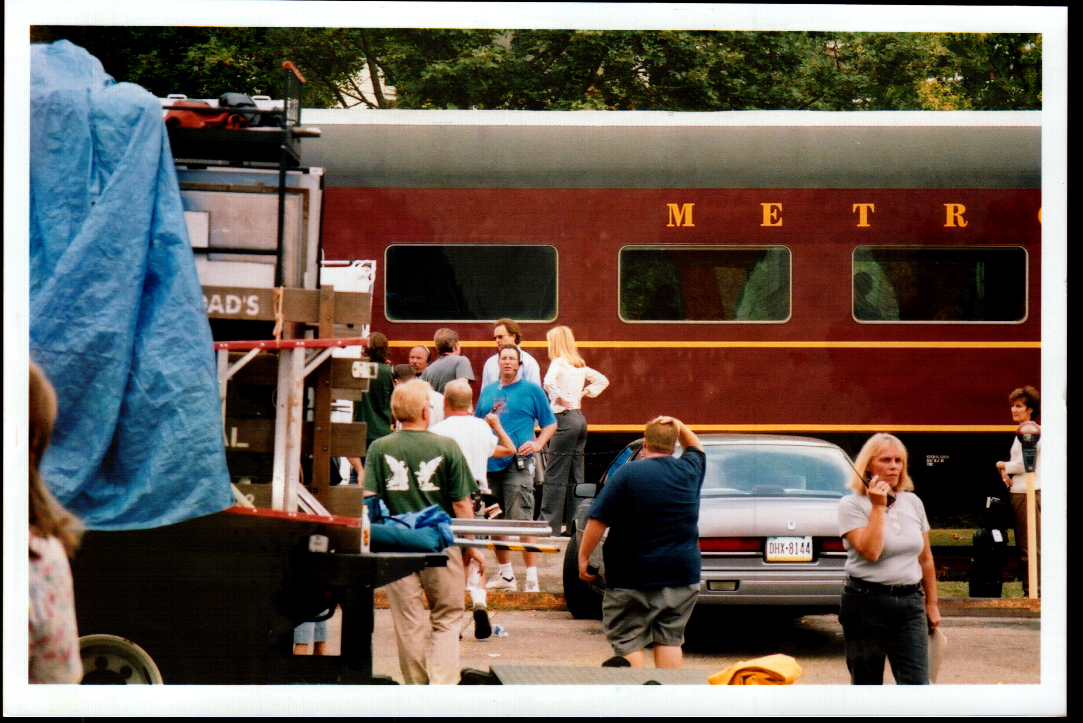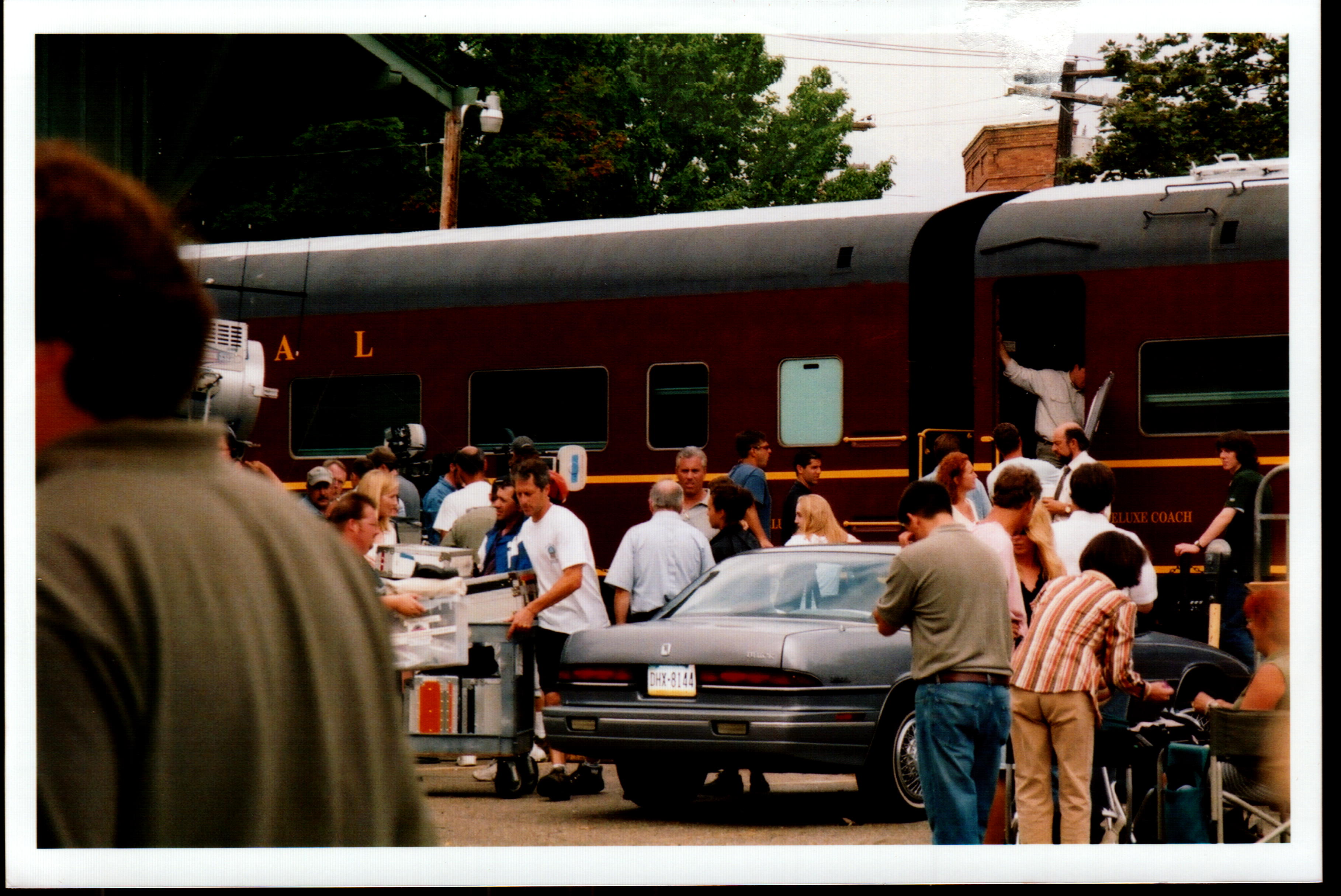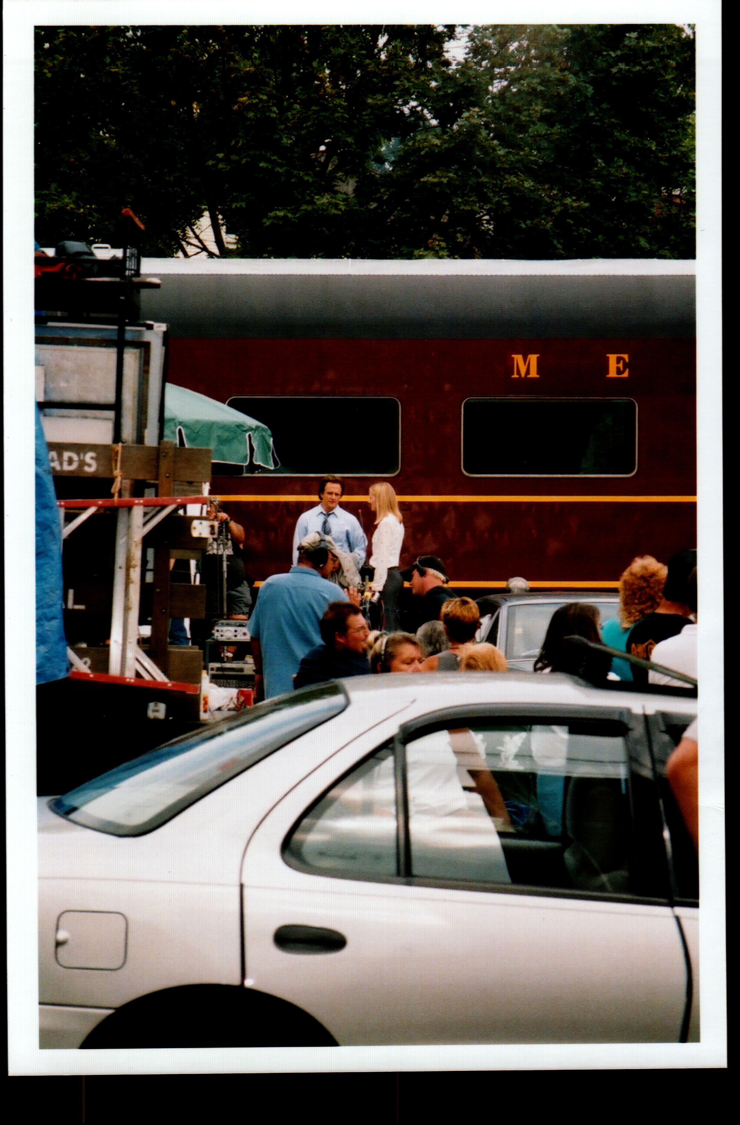 In the episodes President Bartlett is campaigning for reelection in Indian and Josh, Toby, and Donna miss the plane to the next stop. They then have to find their own way to the next stop. Played like a Abbott and Costello sketch, the trio are aided by campaign volunteers played by Amy Adams and John Gallagher Jr (Jim Harper from The Newsroom). Eventually they end up at a train station and board a train. These are pictures from the filming of that scene.