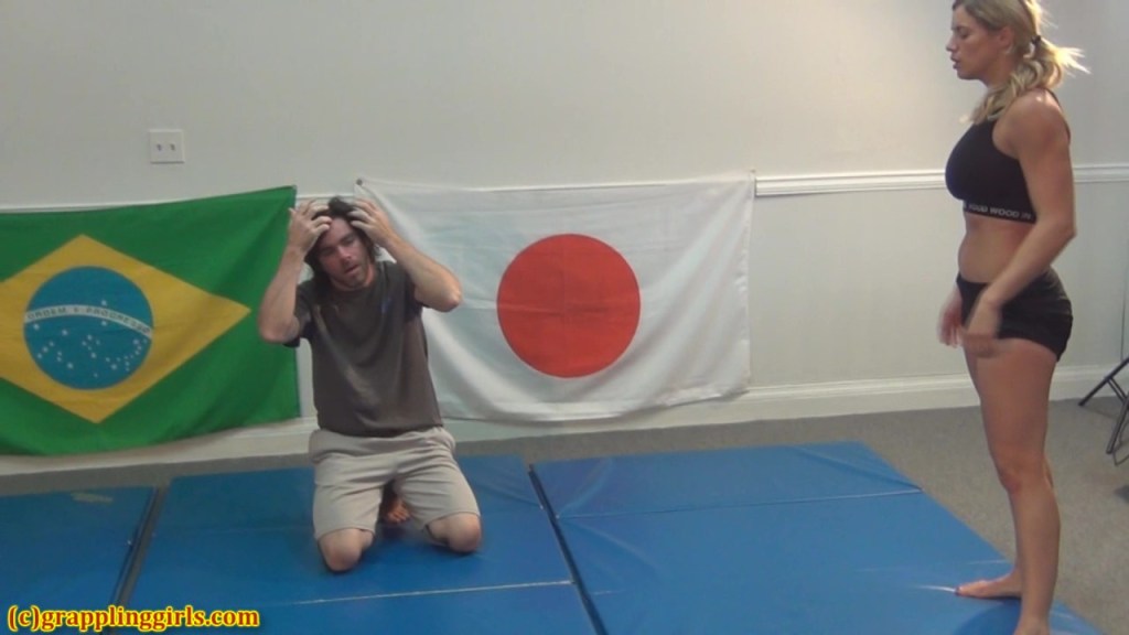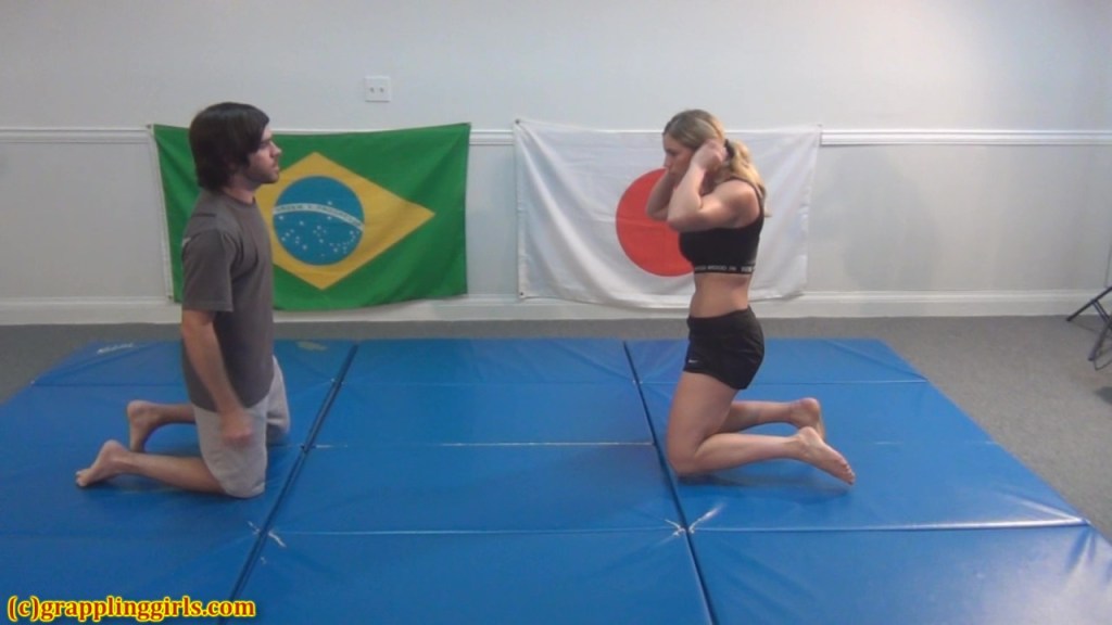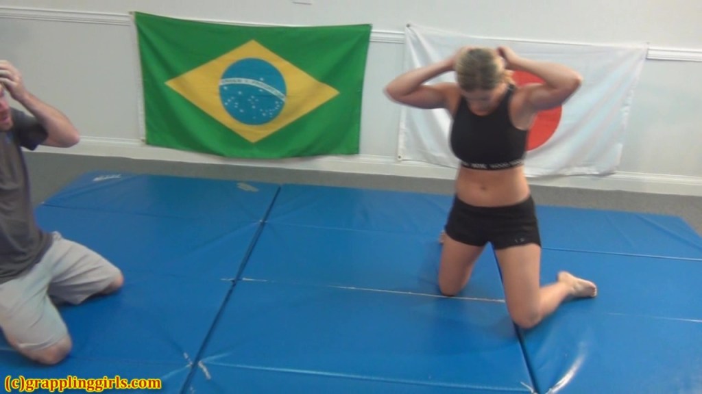 Liz wrestles two opponents back to back. The first makes Liz work for her submissions but doesn’t not come close to pinning Liz. The description for this video says that both opponents taunt Liz but I didn’t see any sign of that during this match.