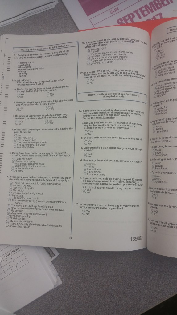 This is a survey conducted by. I actually don’t remember who by, on behavior. I said I don’t remember who administers this survey, I really don’t, and I won’t say where I came across it, but it is similar to the type of surveys the CDC does.