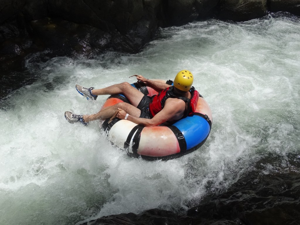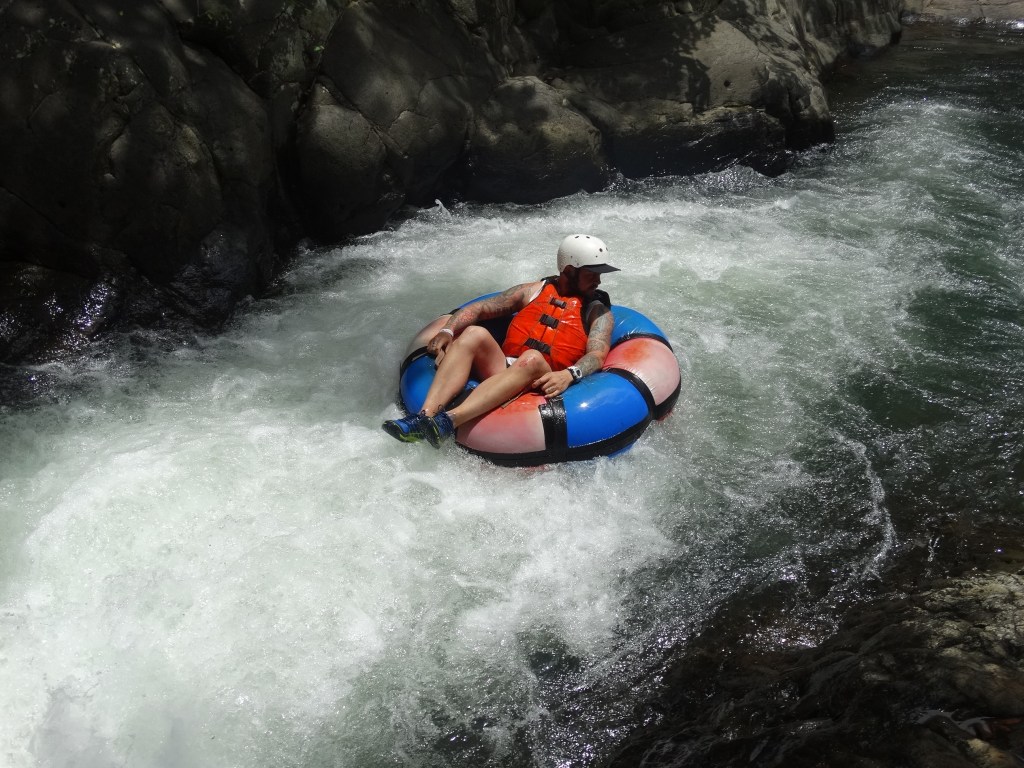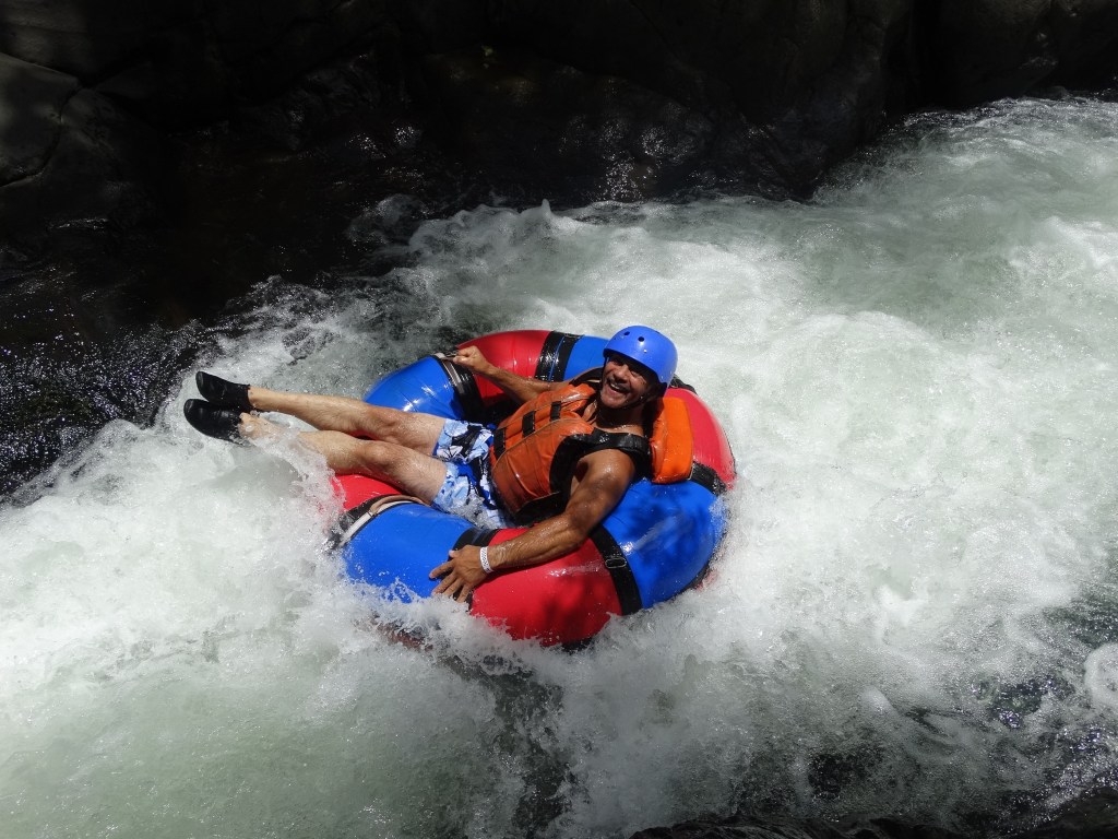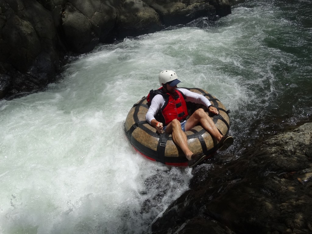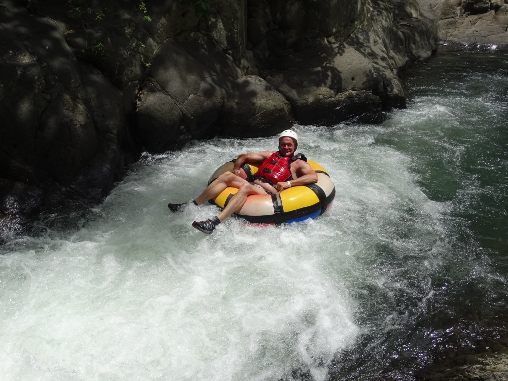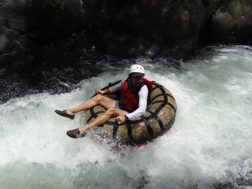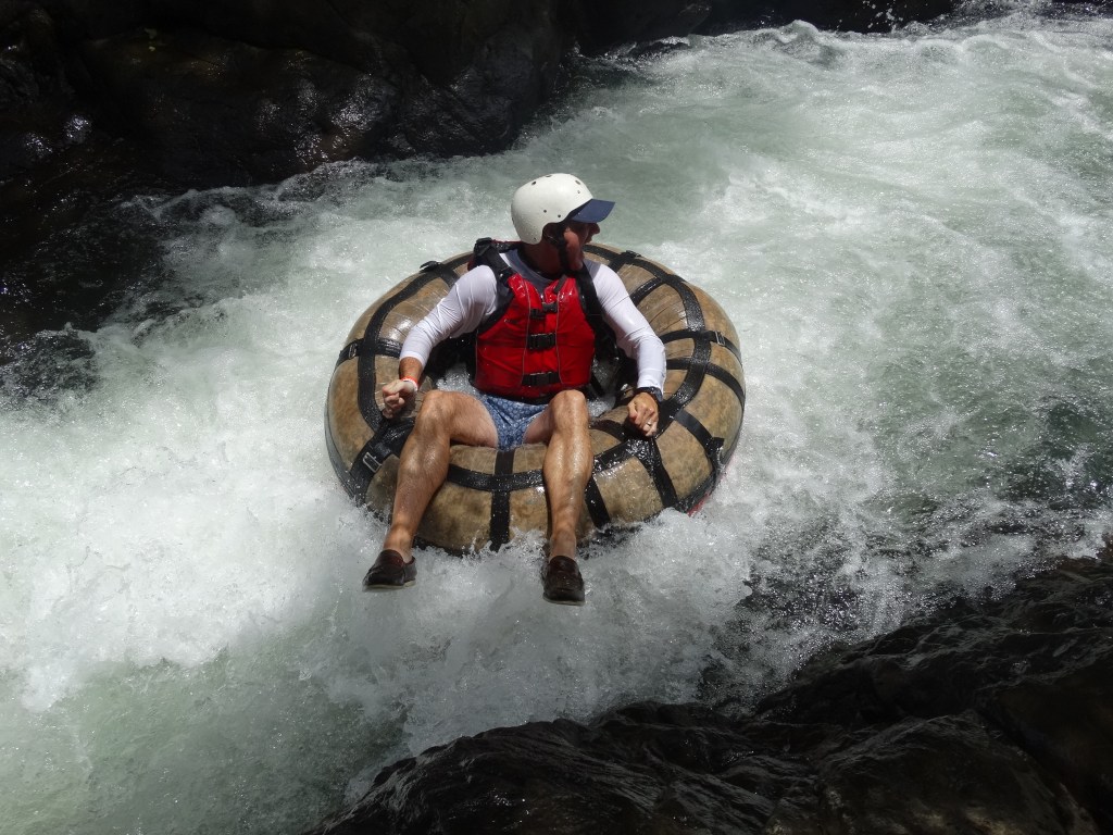 Adventure tourism is big in Costa Rica. Kayaking, surfing, white water rafting, and ziplining are a few of the activities people do there. I enjoy these things so I signed up for a day of adventure with one of the many tour operators found in Tamarindo. $100+ for the day, including travel and a lunch. One stop on the tour was for tubing down a white water river. Completely fun of course and I recommend it. An odd thing is that the finish point is the same as the put in. The river flows down hill the entire time yet we ended where we started. Anyway, here are some pictures and videos for the trip. All pics were taken by tour guides from two separate points.
