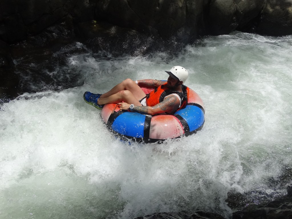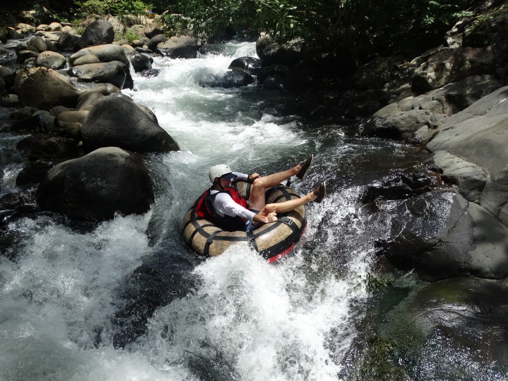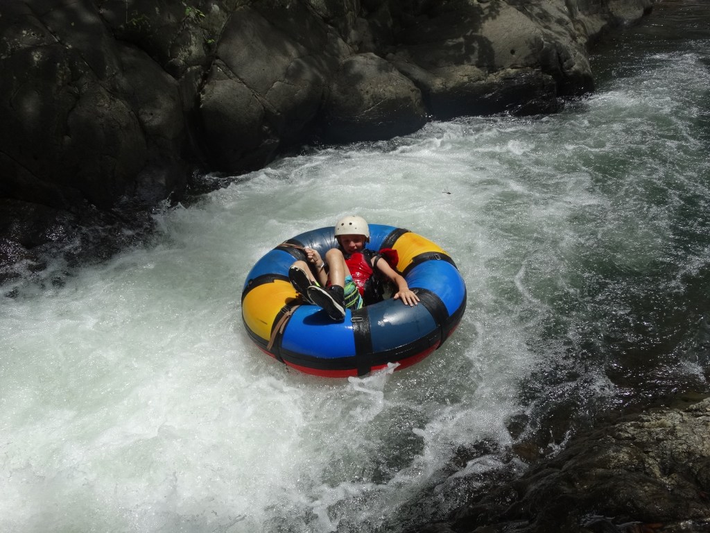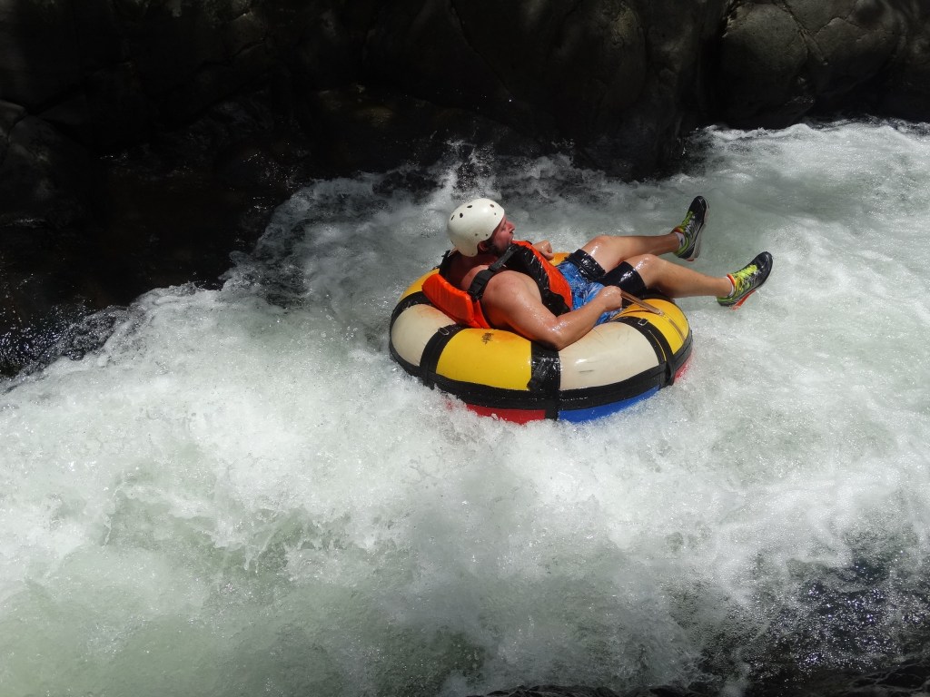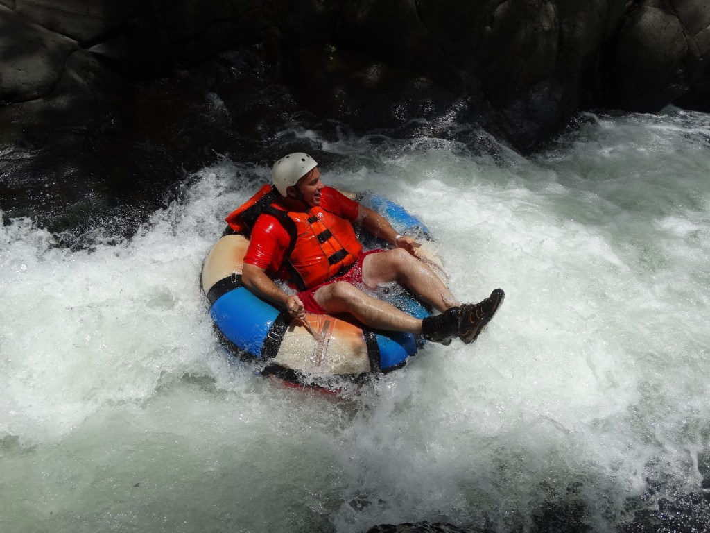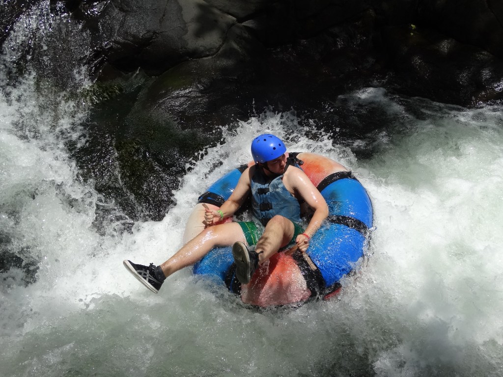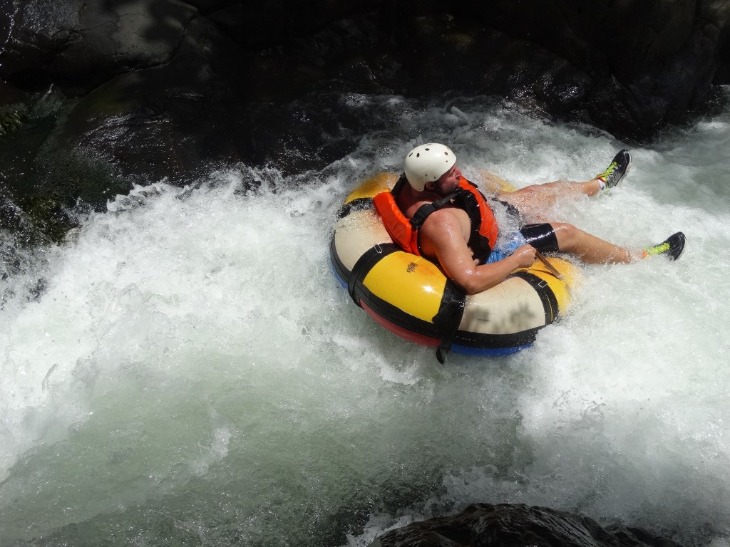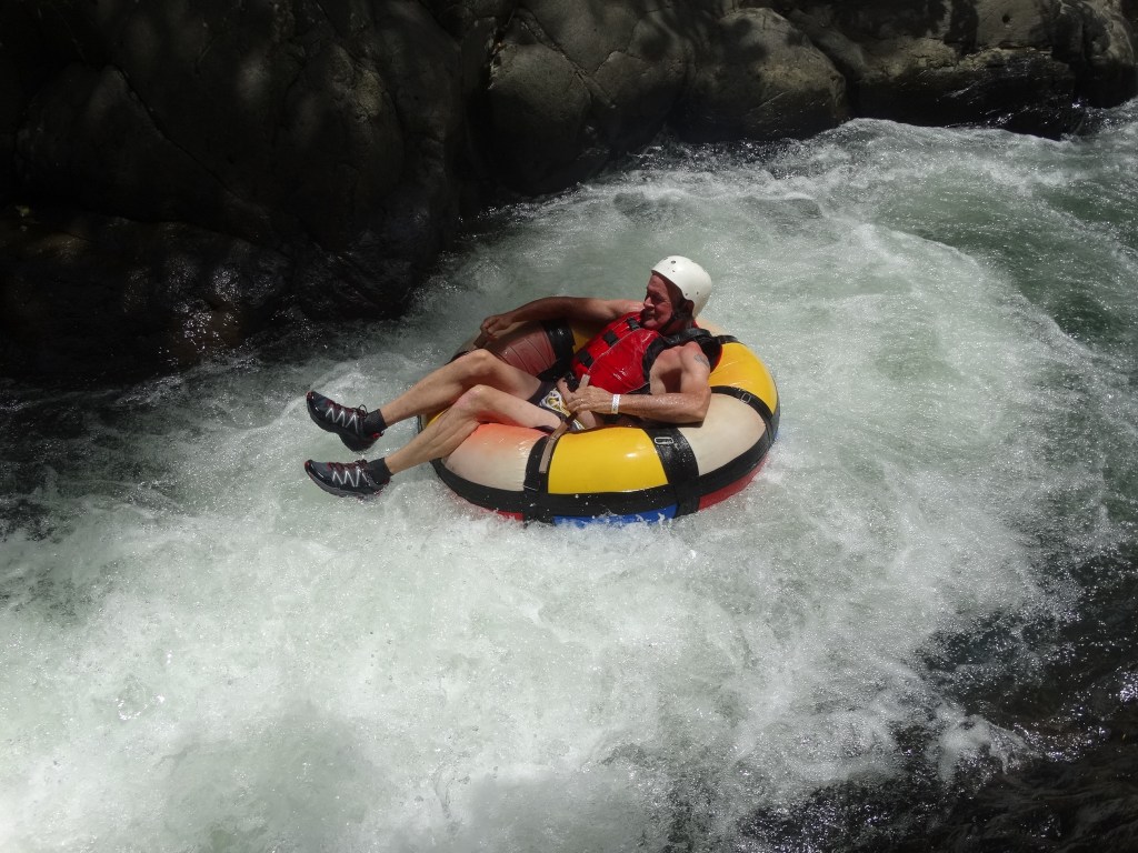 Adventure tourism is big in Costa Rica. Kayaking, surfing, white water rafting, and ziplining are a few of the activities people do there. I enjoy these things so I signed up for a day of adventure with one of the many tour operators found in Tamarindo. $100+ for the day, including travel and a lunch. One stop on the tour was for tubing down a white water river. Completely fun of course and I recommend it. An odd thing is that the finish point is the same as the put in. The river flows down hill the entire time yet we ended where we started. Anyway, here are some pictures and videos for the trip. All pics were taken by tour guides from two separate points.