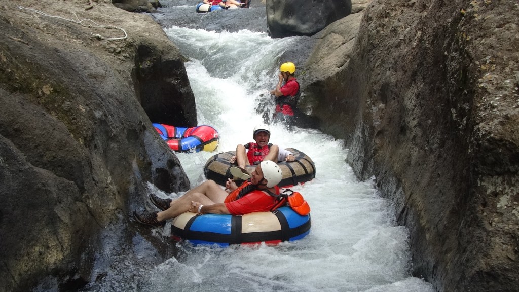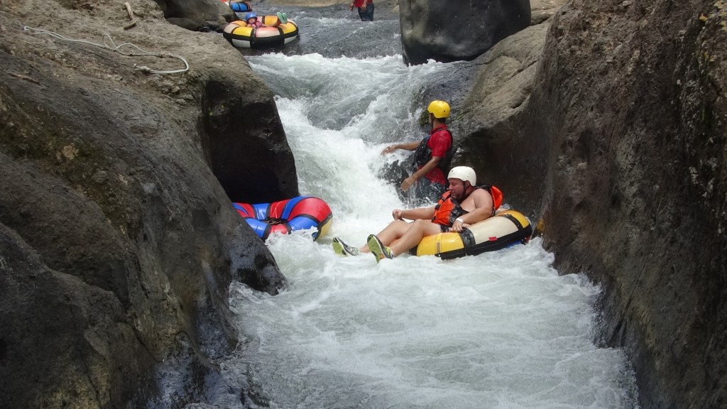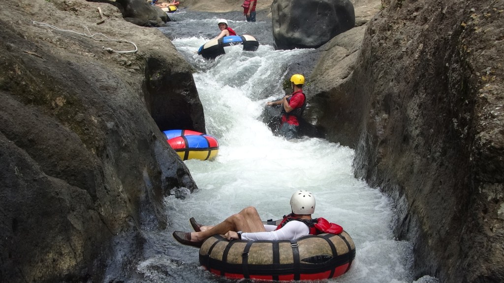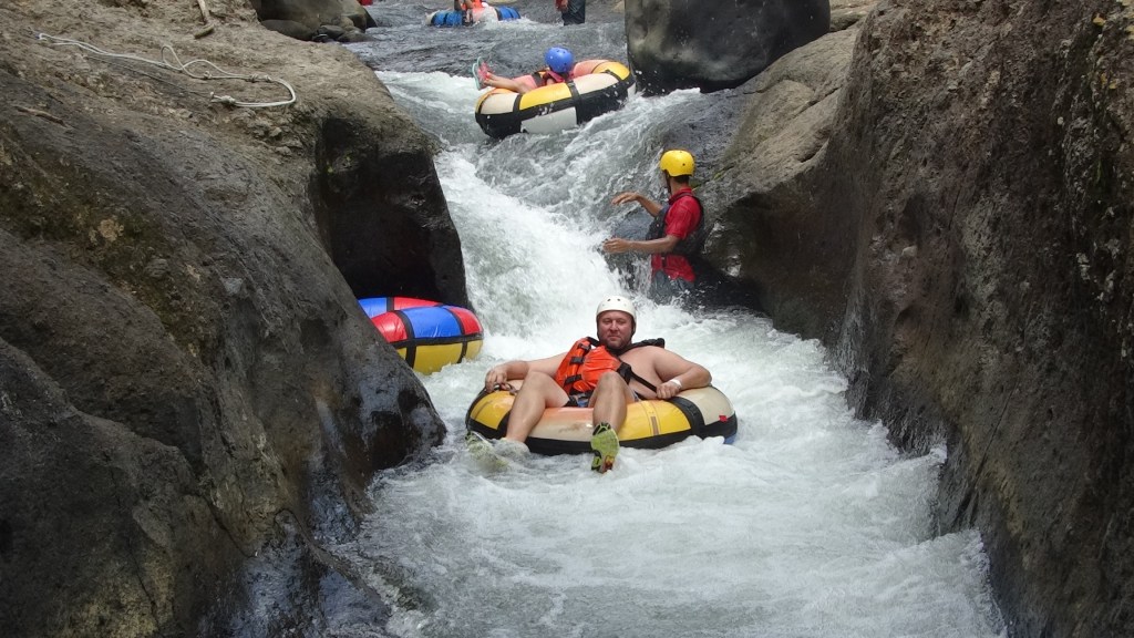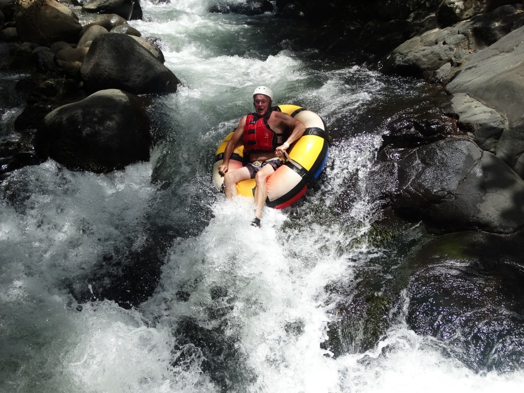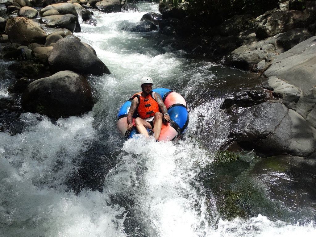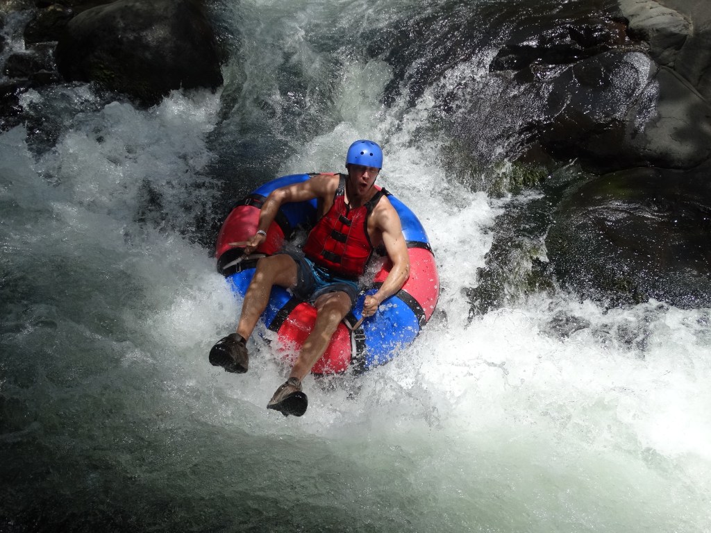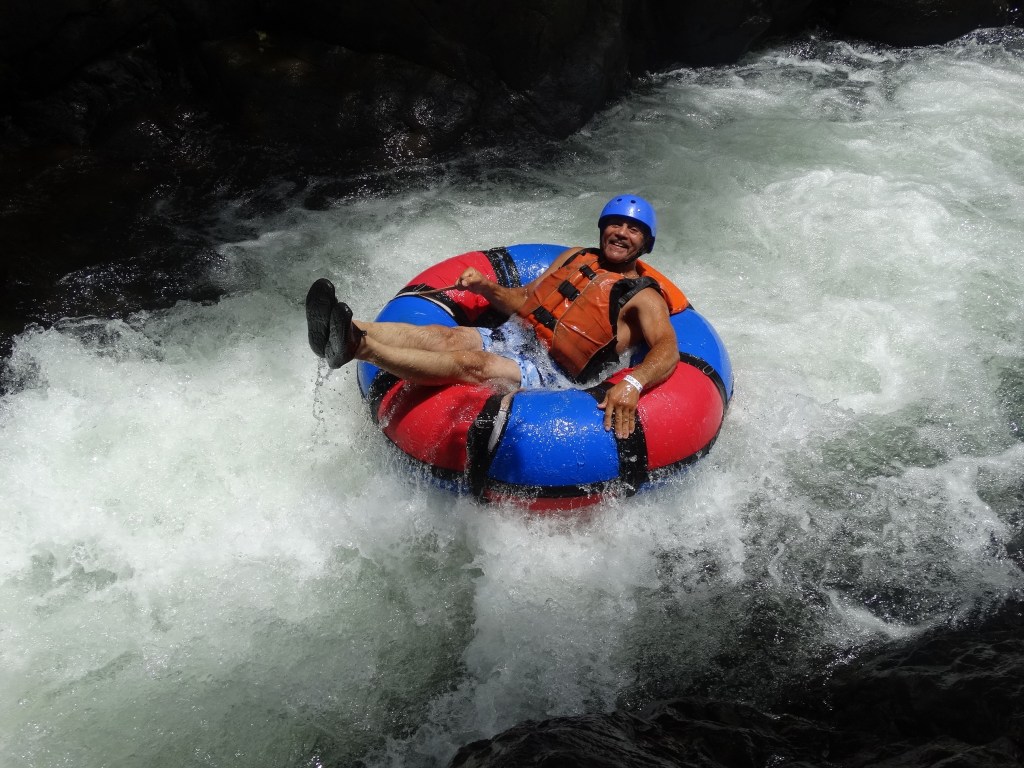 Adventure tourism is big in Costa Rica. Kayaking, surfing, white water rafting, and ziplining are a few of the activities people do there. I enjoy these things so I signed up for a day of adventure with one of the many tour operators found in Tamarindo. $100+ for the day, including travel and a lunch. One stop on the tour was for tubing down a white water river. Completely fun of course and I recommend it. An odd thing is that the finish point is the same as the put in. The river flows down hill the entire time yet we ended where we started. Anyway, here are some pictures and videos for the trip. All pics were taken by tour guides from two separate points.