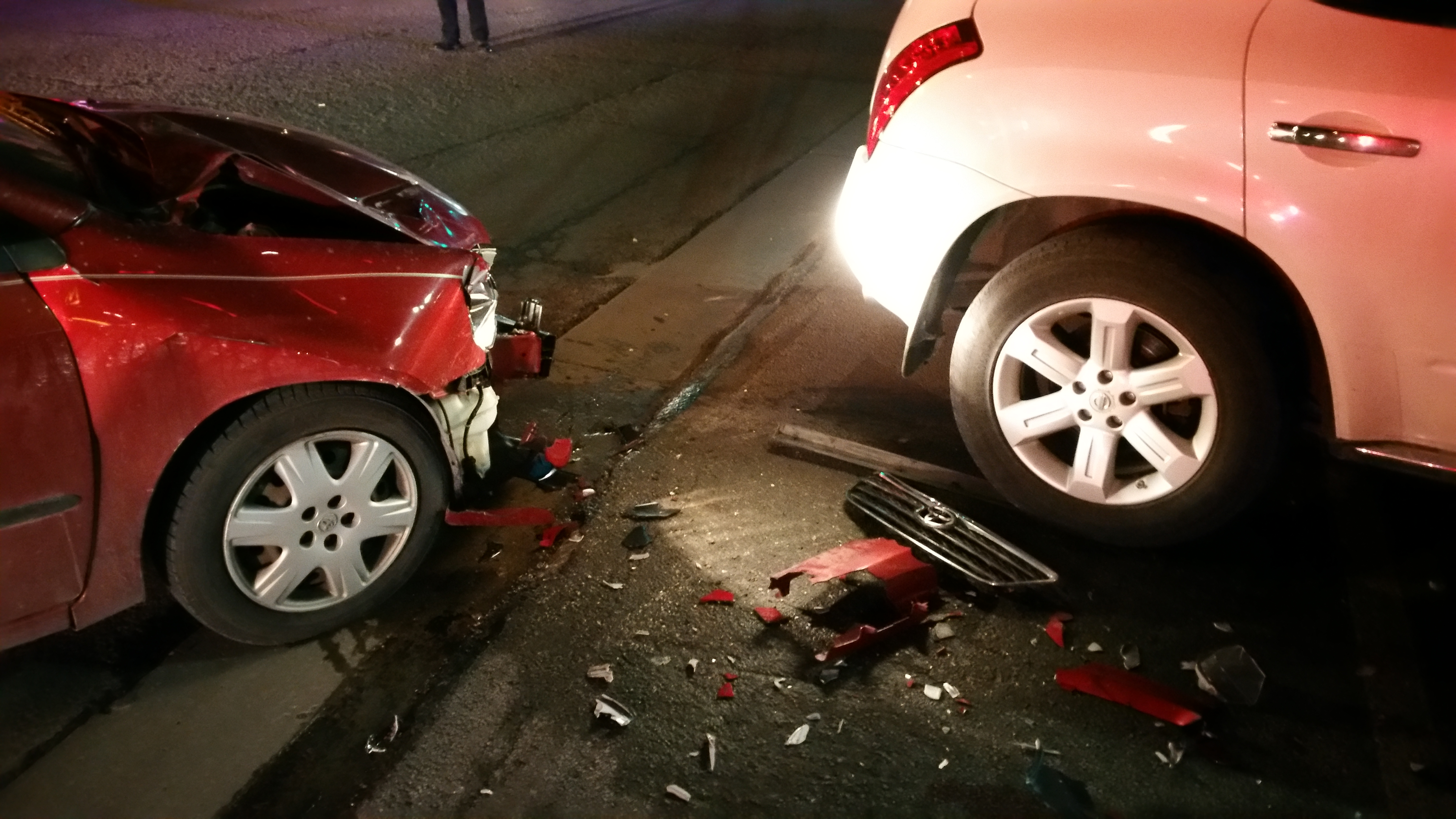 Middle photos: I was parked along the curb on the right side of the road. The building I was parked next to is at the corner of two roads. Before I pulled out I looked over my shoulder and didn’t see a car coming. The person that hit me was making a left onto the street where I was parked and, in my view, cut the turn too sharply and quickly, didn’t see me, and hit me. The police officer told me know matter how it went down I was at fault because I was pulling out onto the road from a parked position and therefore it was my responsibility to make sure the lane was clear.