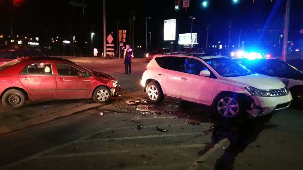 Top photos: February of 2016 I was driving southbound on my town’s main road. There is a major intersection just before crossing from the next town into mine. The intersection is four-way and doesn’t have a green arrow for any direction (it does now). On the left side coming out of my town is a new shopping center with an Aldi’s, Starbucks, and Chipotle. People turning left into that lot have to yield on green. It was a dangerous intersection and many people turning left didn’t yield the right-of-way. That’s what I encountered. As I entered the intersection a teenager turn left in front of me and I drove straight into her. I didn’t have time to stop nor did she try to stop or avoid me. My car was totaled and again I went from having a perfectly fine paid-off car to having to get a new car with a payment. She didn’t get a ticket, I don’t believe, and her car insurance paid for everything. Since then the light has been redesigned and now there is a left turn arrow for people who want to go to Starbucks or Aldi’s.