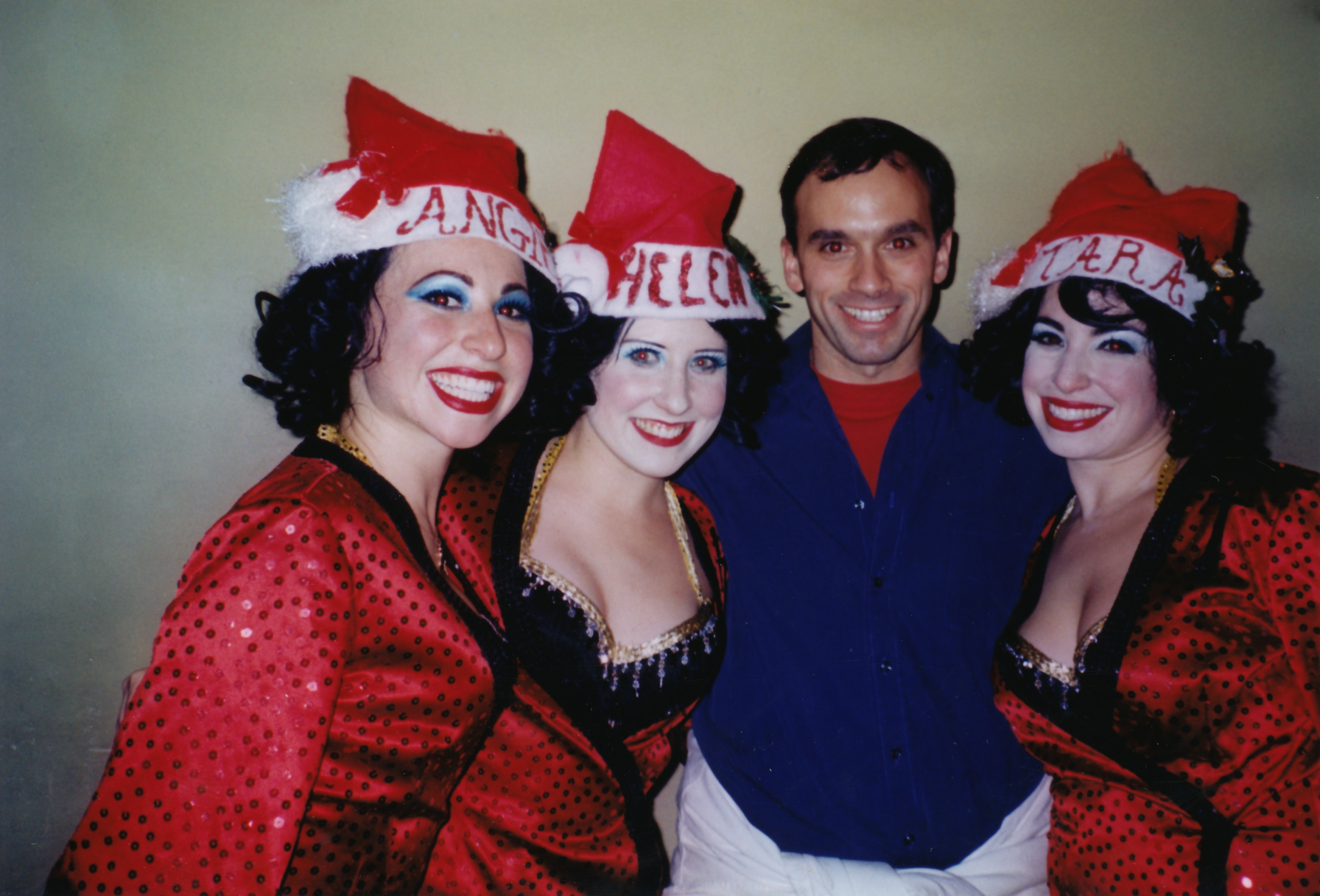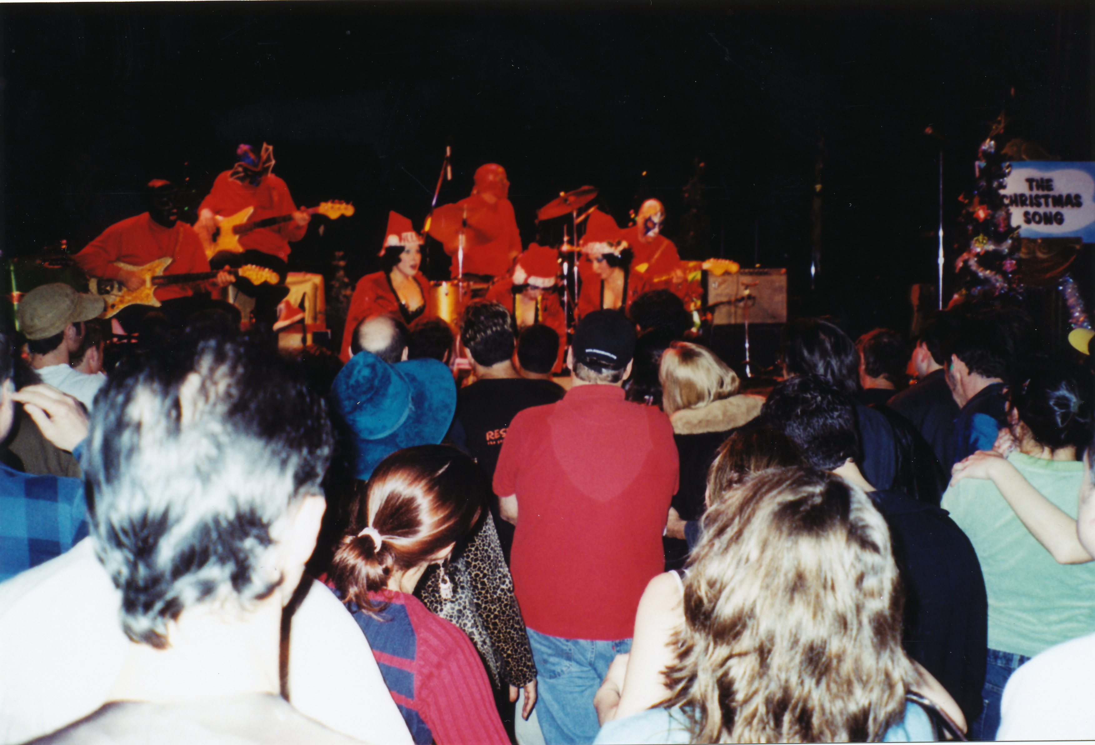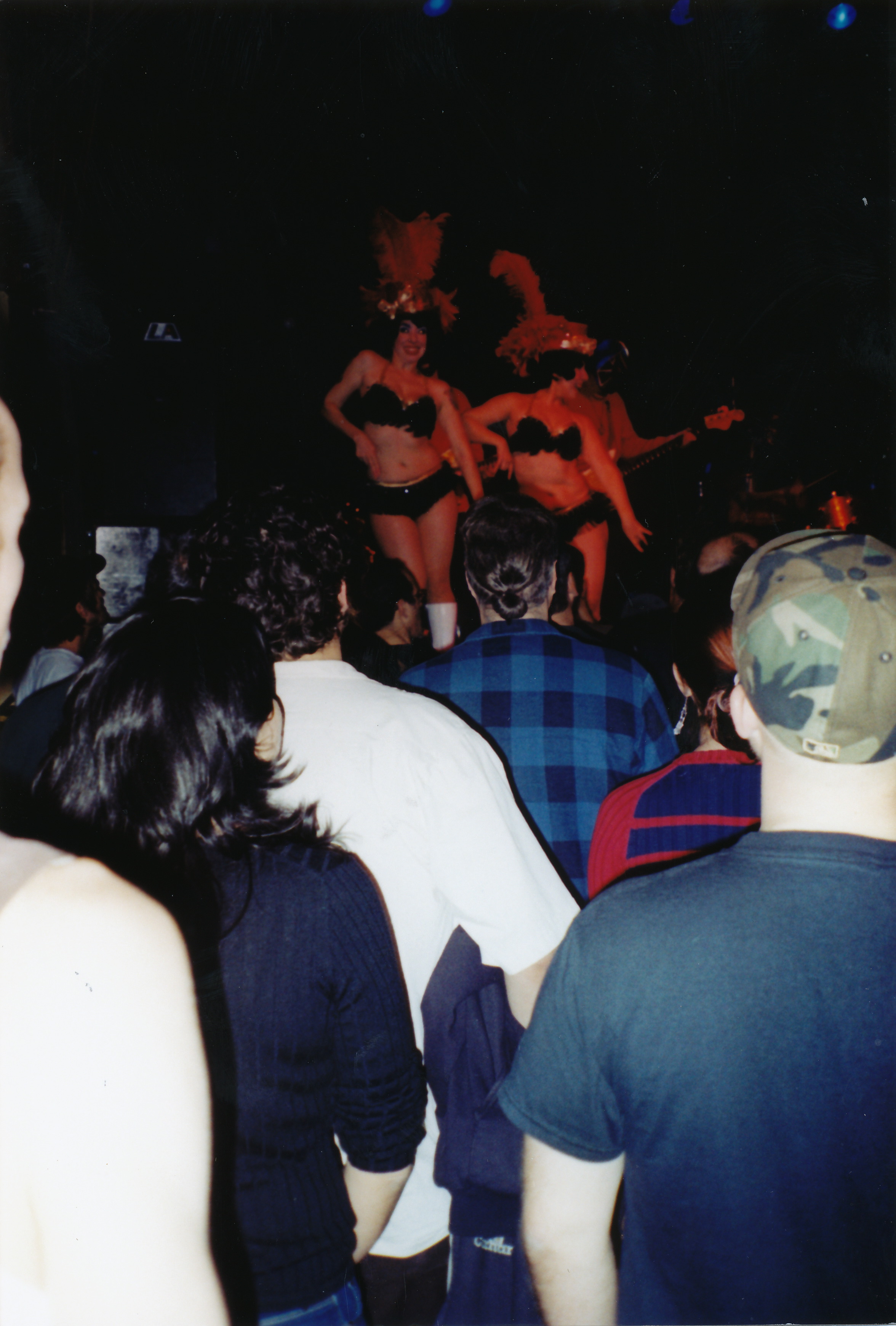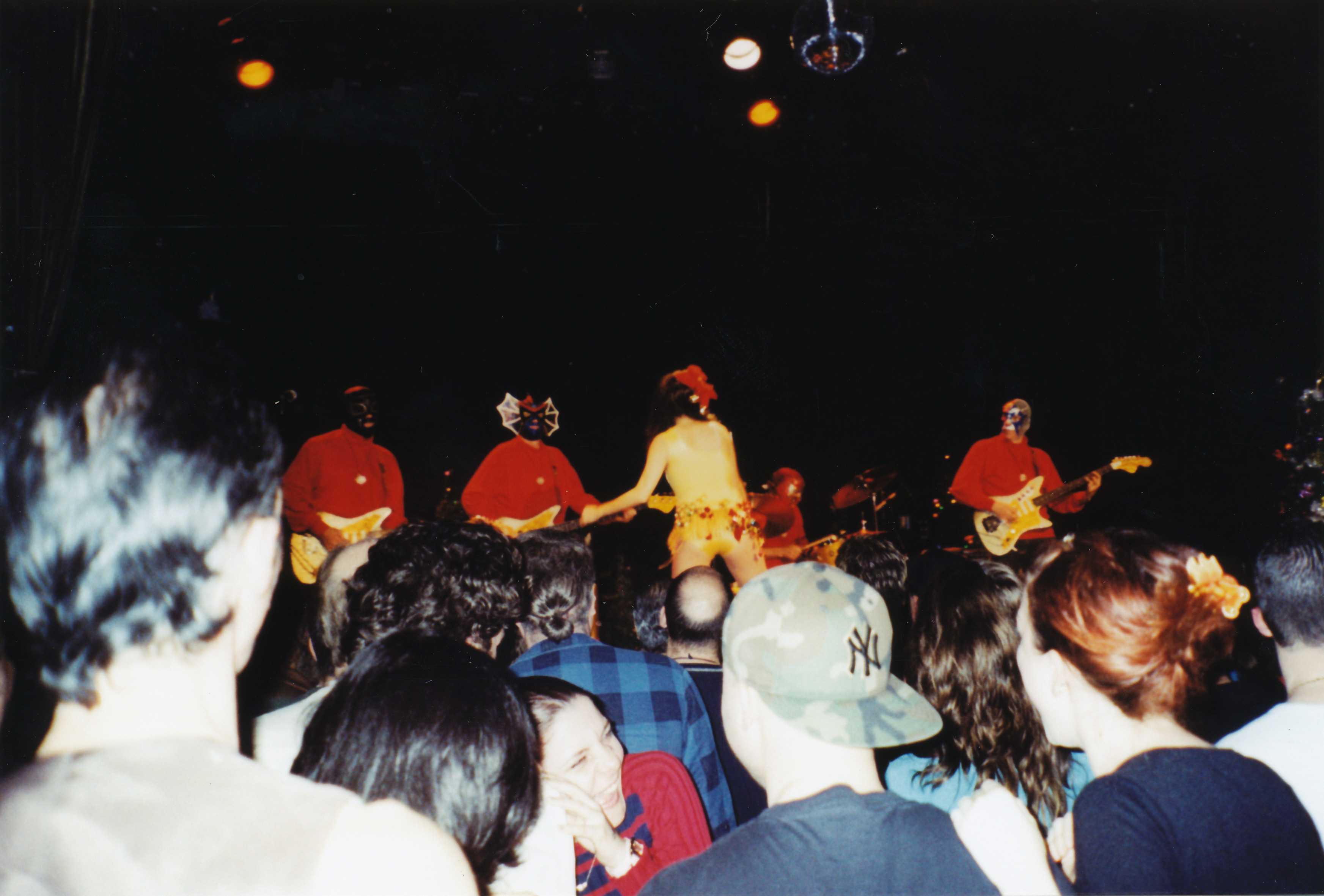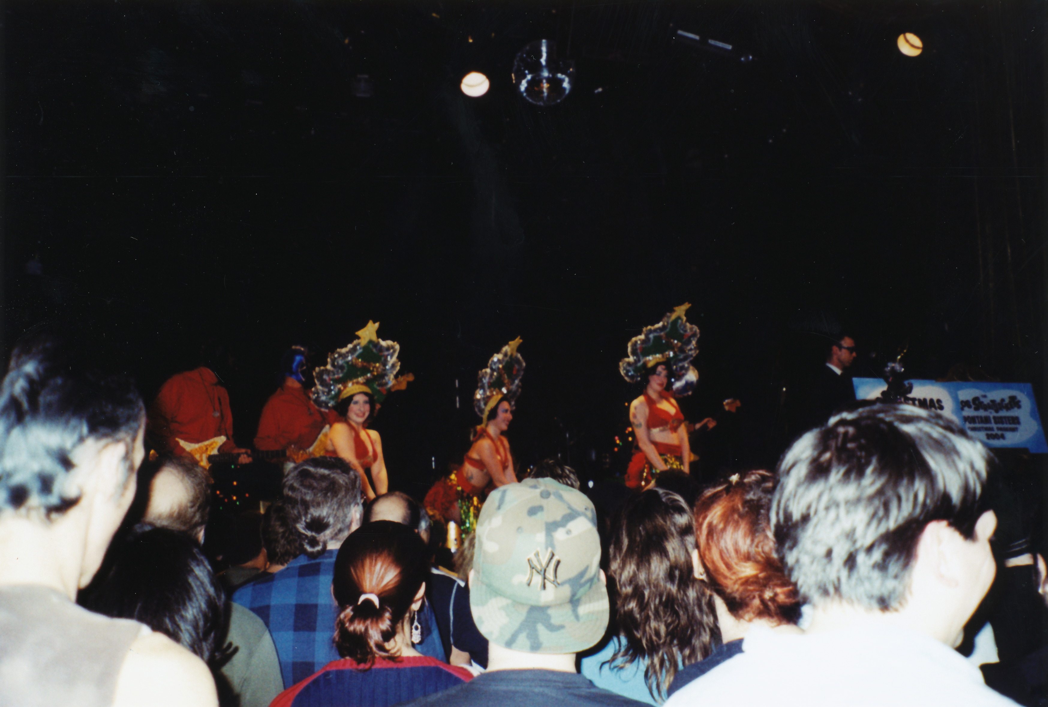 The World Famous Pontani Sisters (Tara, Helen, Angie) performing with Los Straightjackets at their Christmas show at the now closed Rosebud cafe in Pittsburgh, PA, sometime around 2003 (?). The Los Straightjackets are a surf guitar type band whose gimmick is that they wear Mexican wrestling masks. The Pontani Sisters are/were (?) a burlesque act. They opened for The Reverend Horton Heat. The quality of the video is not great.