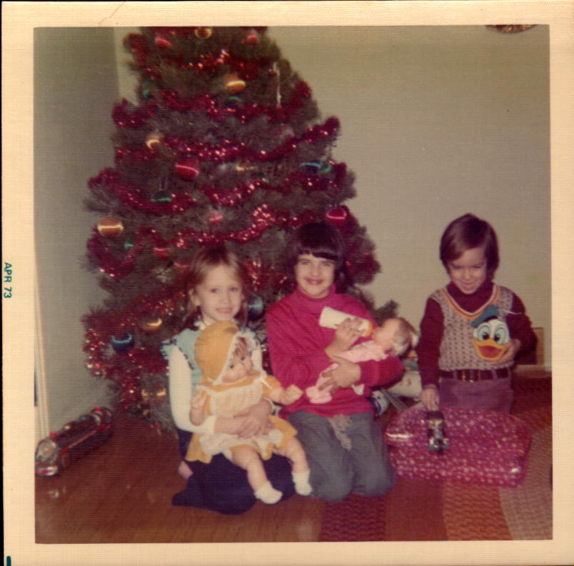 I love that haircut. Who are these people and is this Gettysburg. Me, my sister, two kids. Is this from Storybrook forest?This must have been a good day. We all look so happy. My sister is holding a very life like doll. Brown has always been my color. My mother looks happy here. (She hasn’t gotten pregnant with my brother yet.) I am being distracted by my father I guess.My mother looks happy here. (She hasn’t gotten pregnant with my brother yet.) I am being distracted by my father I guess.My sister, our cousin Amy, me. My sister and cousin are smiling because they haven’t learned they don’t like each other yet. If this is Christmas 1972 I am six weeks from turning four. Do almost four-year-olds get this big. Another sweater vest. The is Christmas 1972 so my sister is five and my grandmother is fifty-one. Grant St house. I think my sister still has the rocking chair visible behind them.